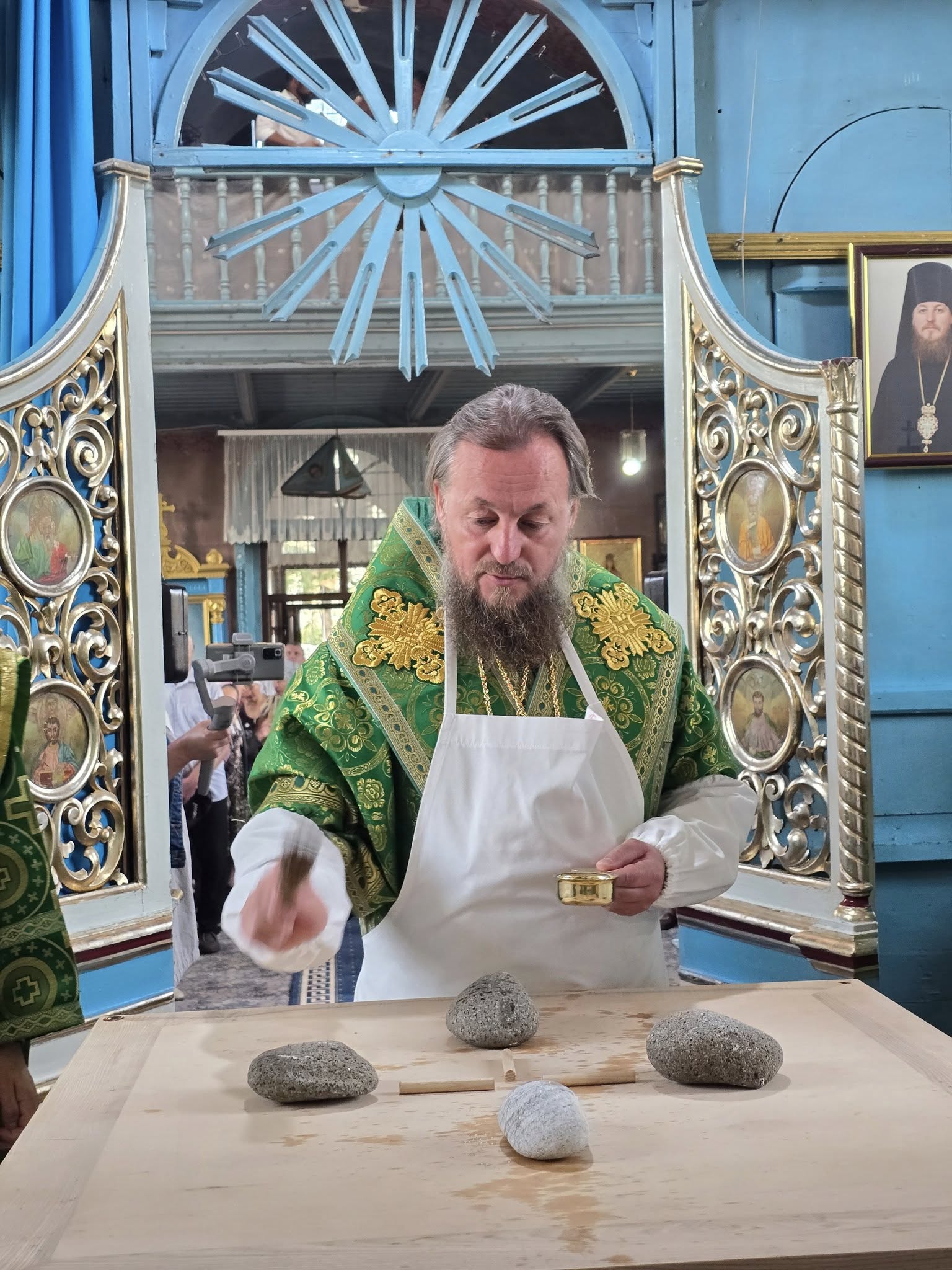 În timpul vohodului mic, cu binecuvântarea Înaltpreasfințitului Mitropolit VLADIMIR, părintele Ioan BOTEA a fost avansat în rangul de protoiereu.