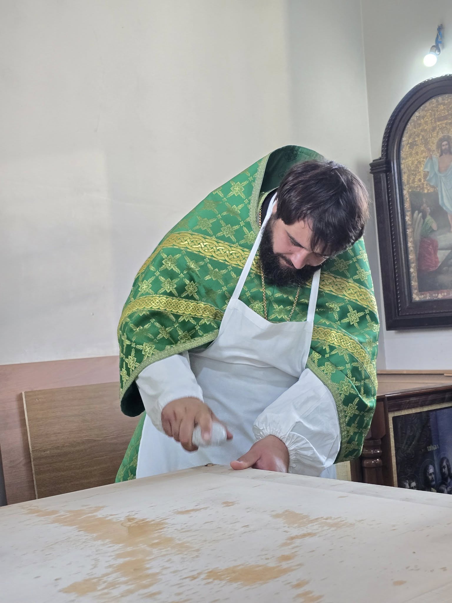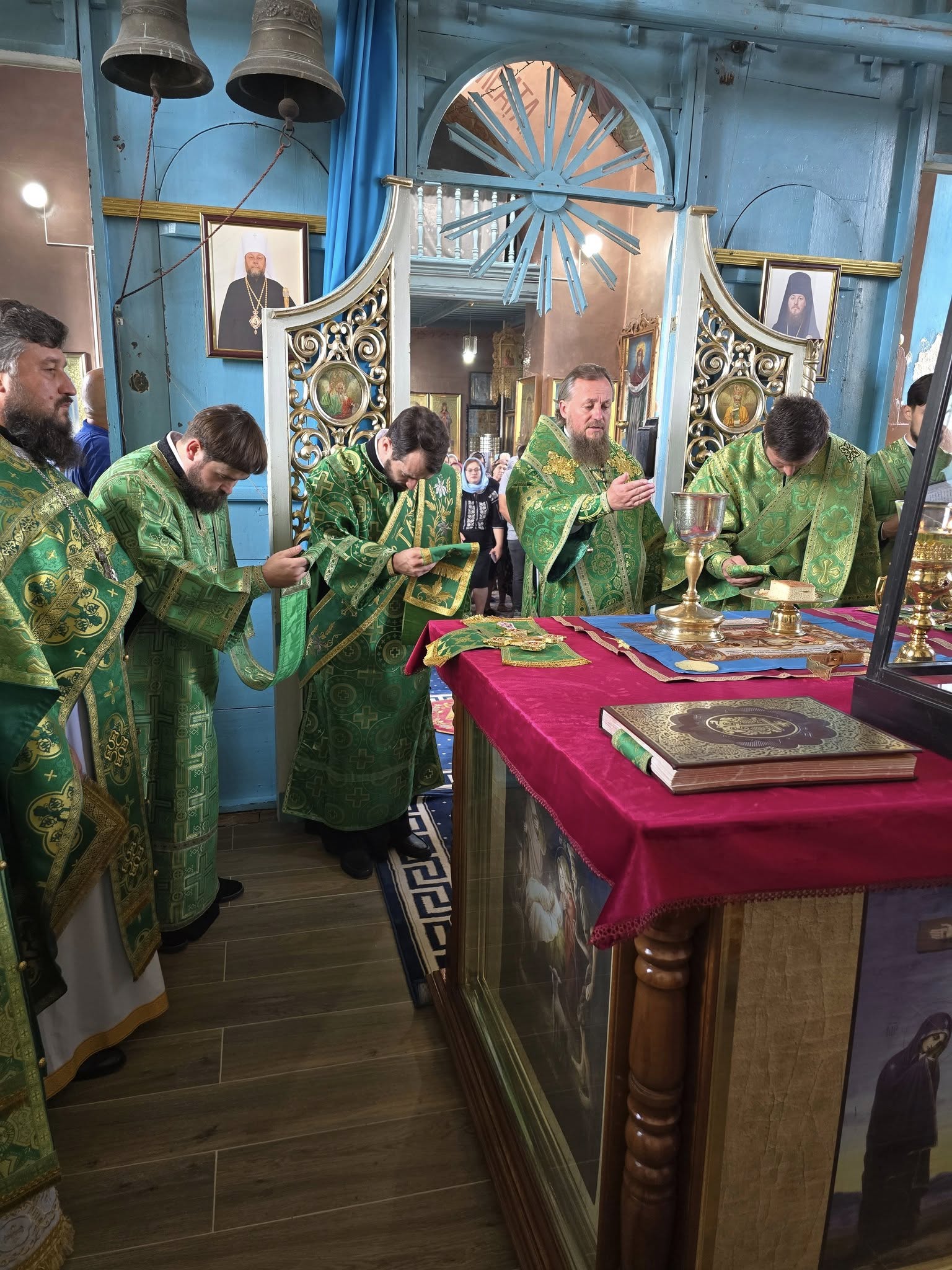 În dimineața zilei, Înaltpreasfinția Sa a săvârșit rânduiala sfințirii Prestolului, apoi a urmat Sfânta Liturghie.