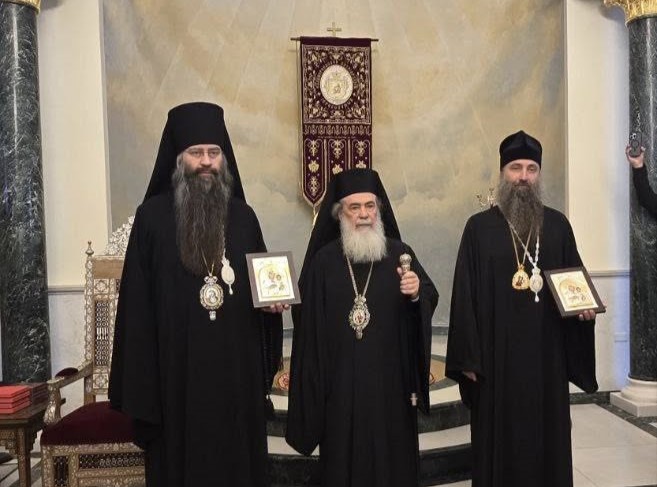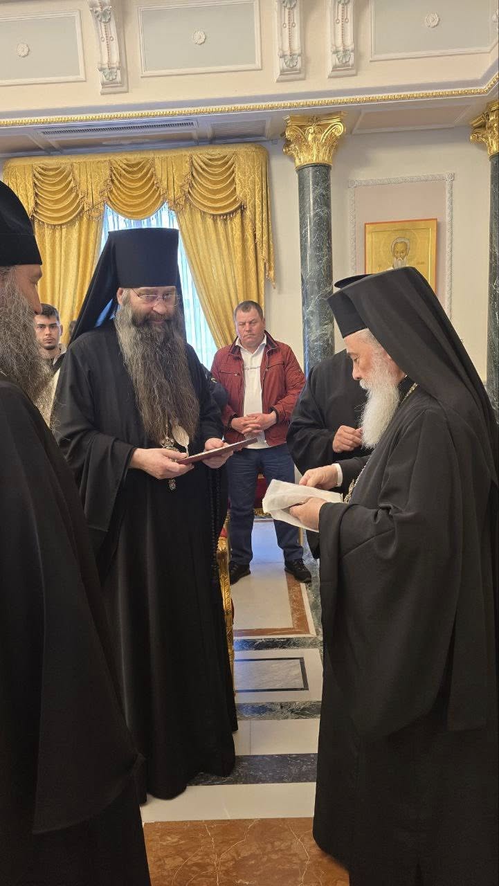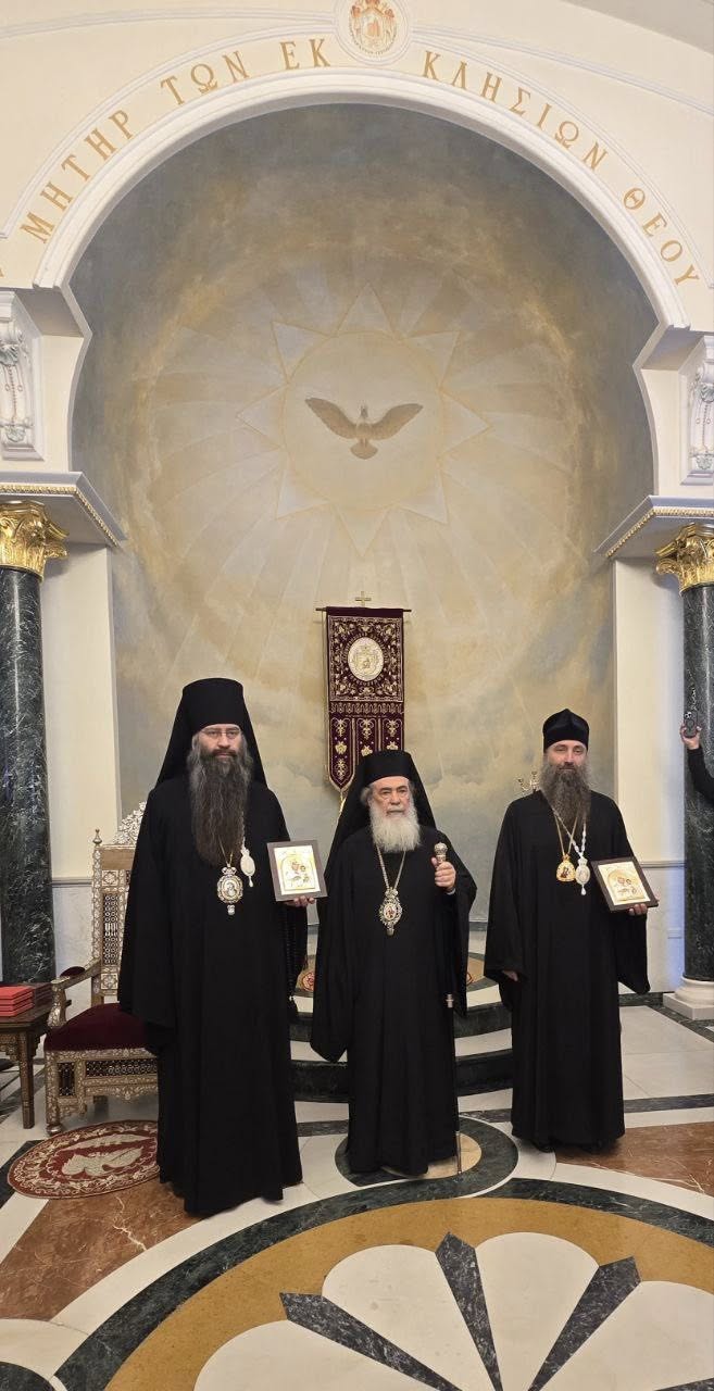 Episcopii PS Filaret și PS Patrocl împreună cu pelerinii noștri a fost primiți de către Patriarhul Ierusalimului, Preafericitul Teofil al III-lea