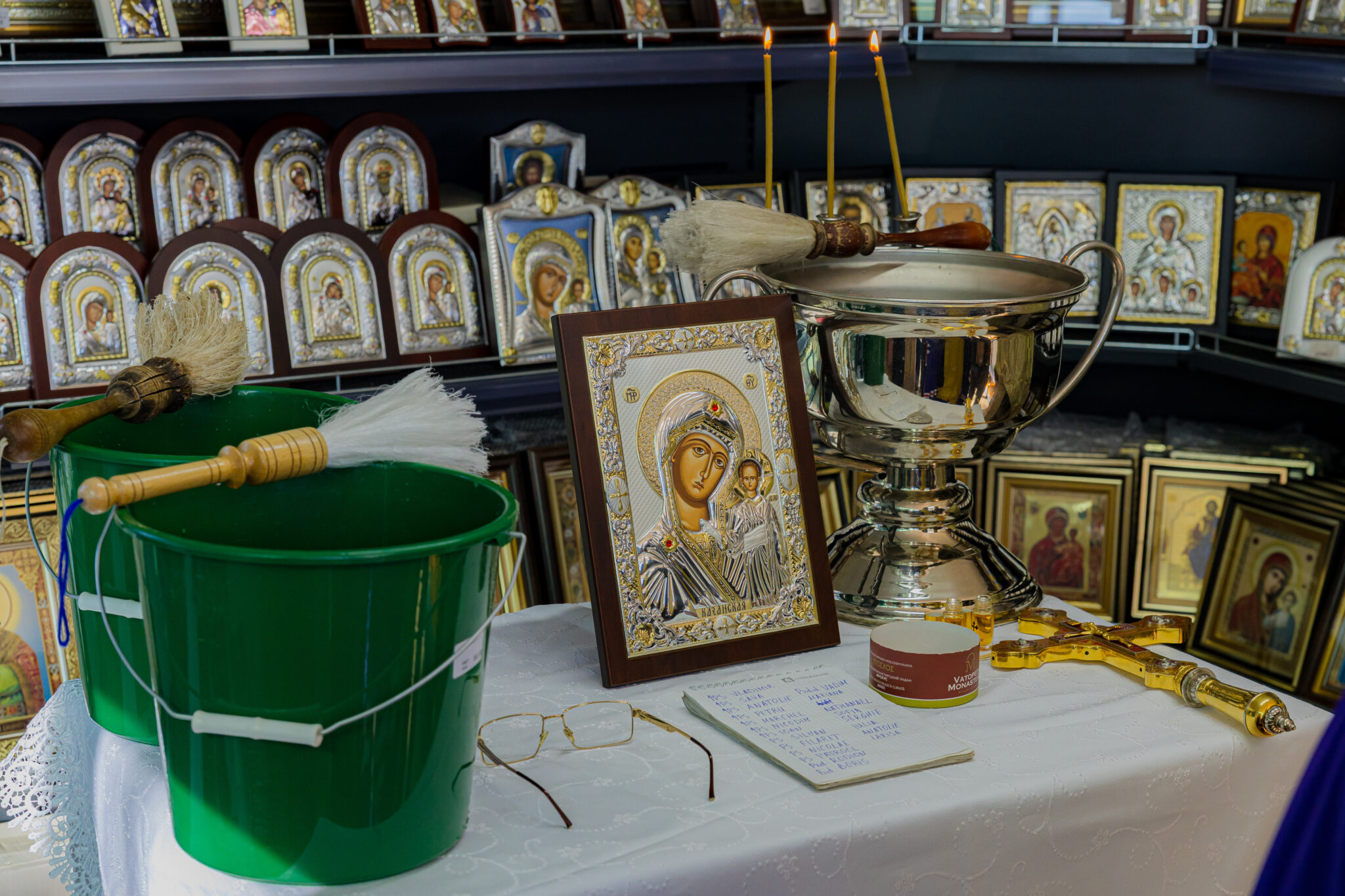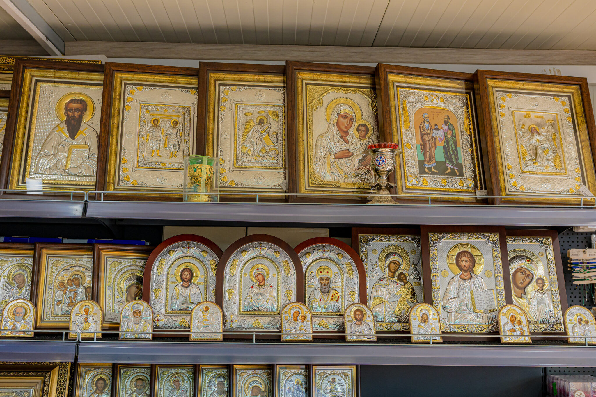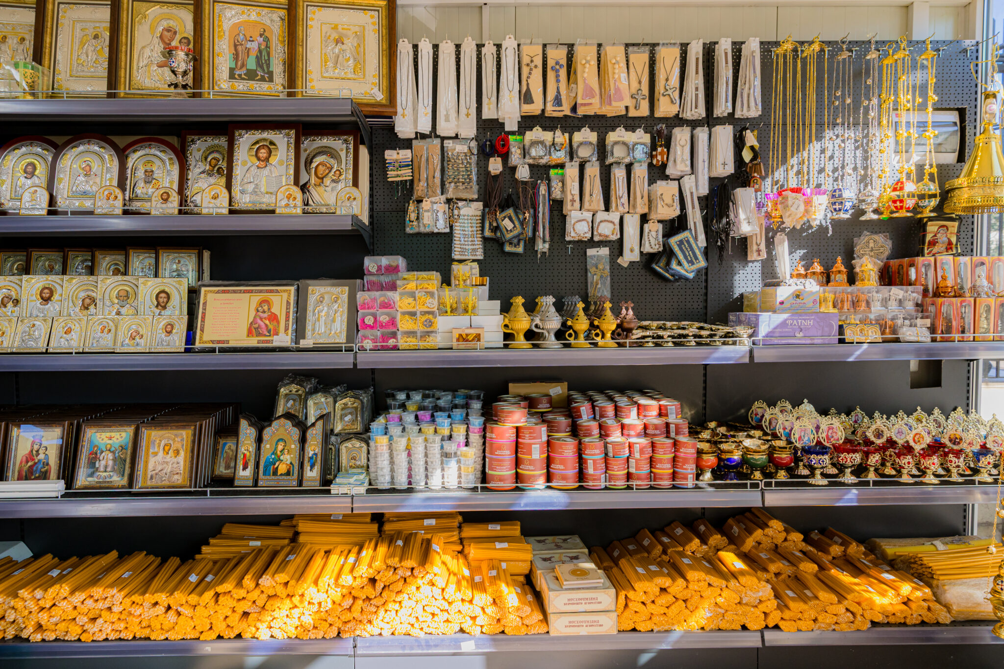 În acest magazin cu specific bisericesc pot fi găsite obiecte destinate cultului ortodox: icoane, cruci de binecuvântare, cădelnițe, tămâie, mir și alte consumabile folosite în cultul Bisericii sau în rugăciunea particulară. De asemenea, pot fi achiziționate și produse la comandă.