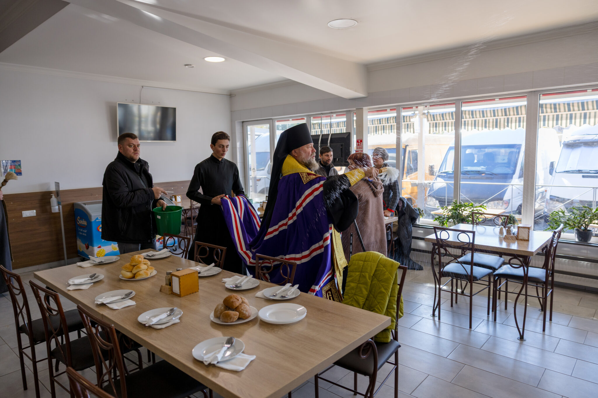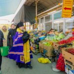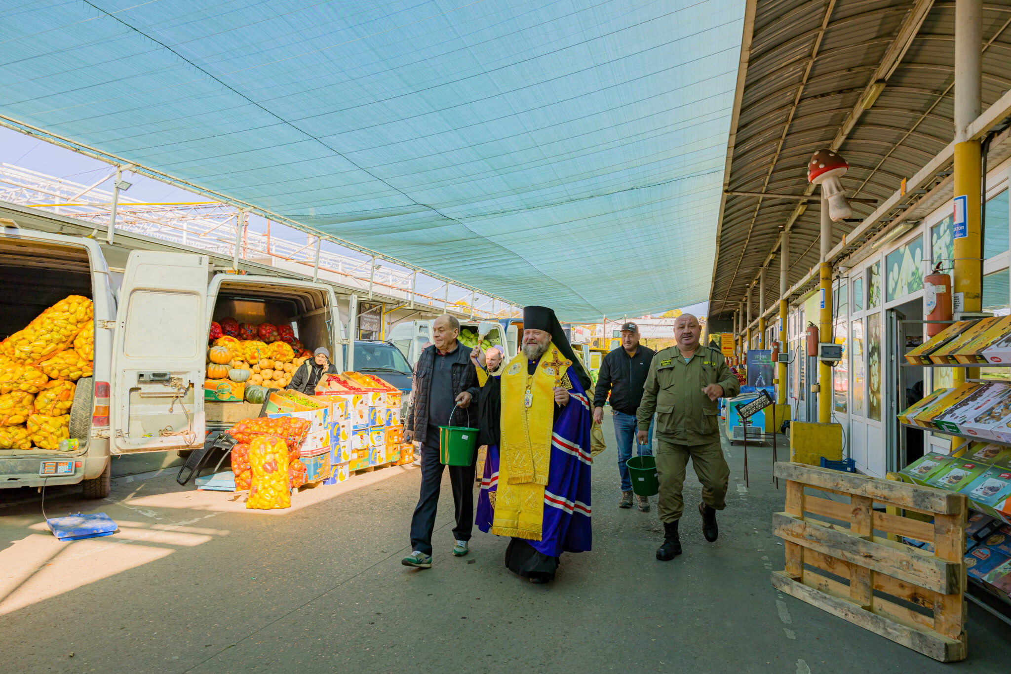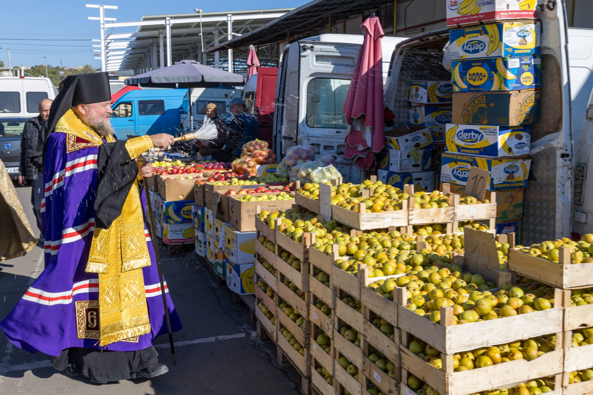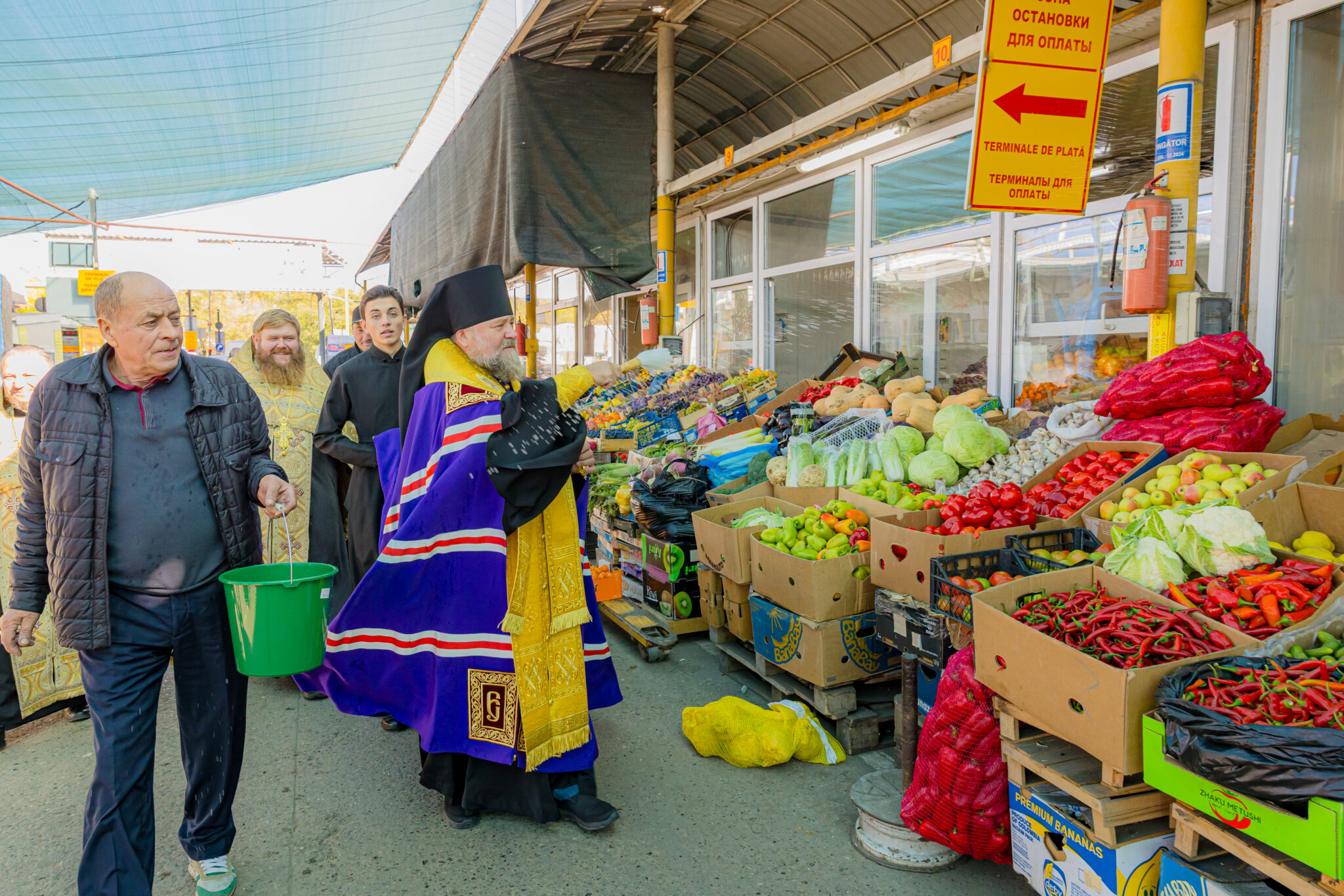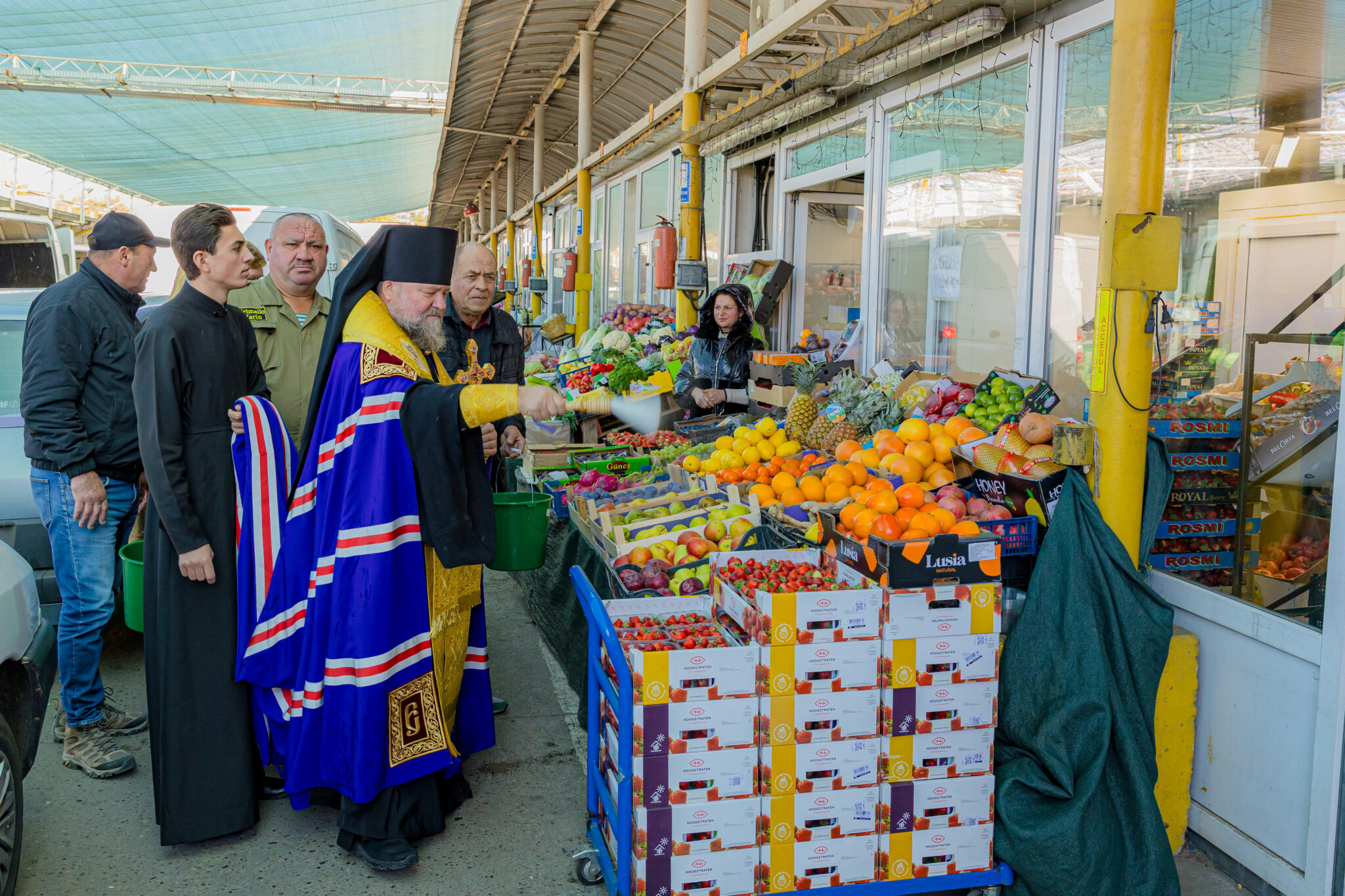 La cererea administrației pieței și a comercianților, Preasfințitul Nicolae a binecuvântat și a stropit cu apă sfințită produsele autohtone expuse spre vânzare, rodul muncii gospodarilor din țara noastră.