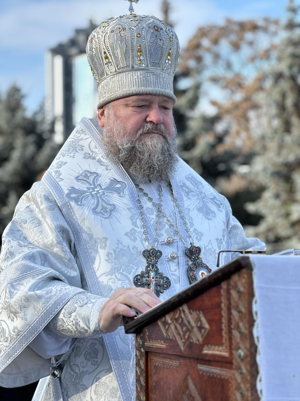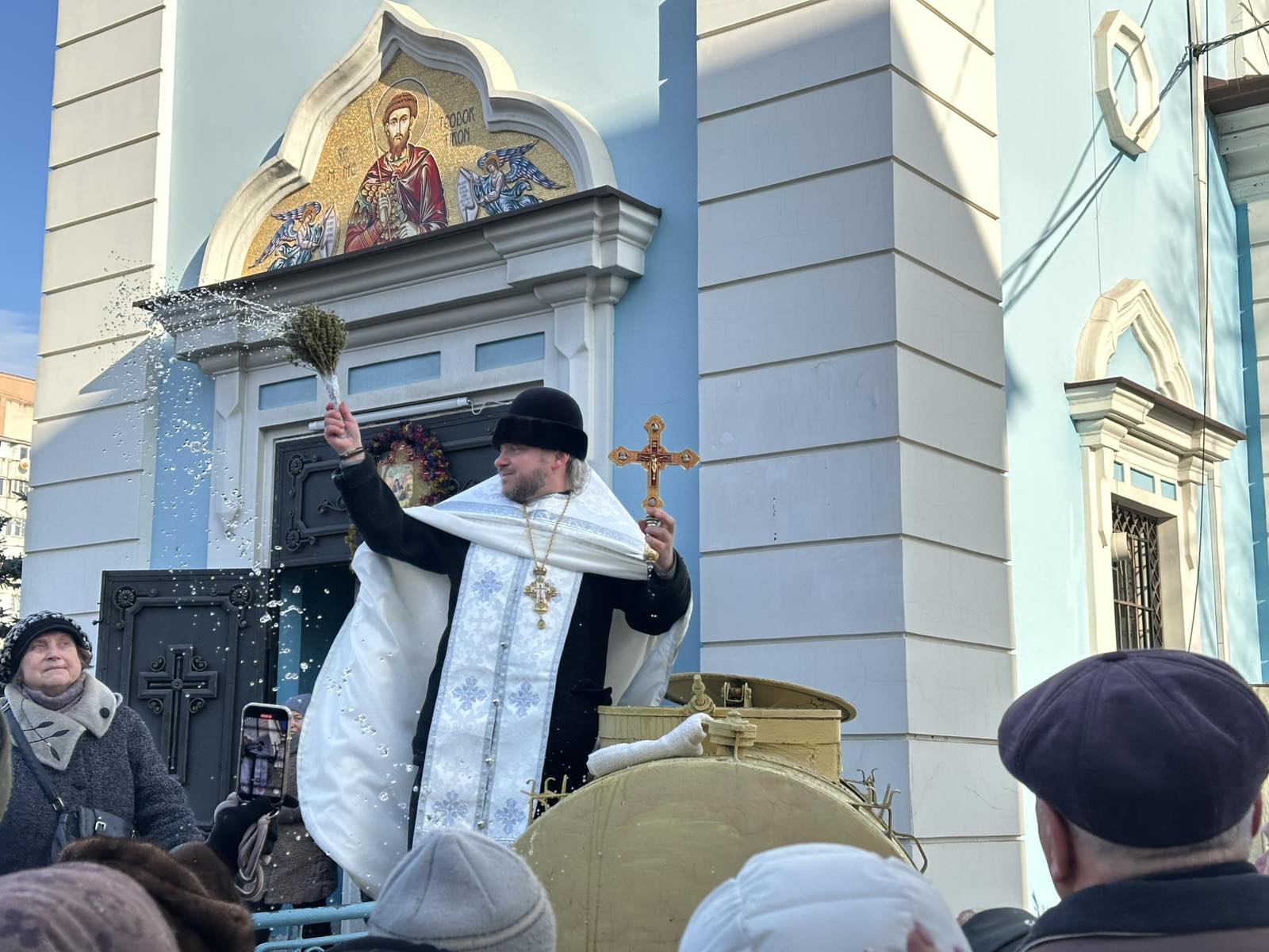 După sfinţirea apei, Vlădica Nicolae a binecuvântat credincioşii, stropindu-i cu apă sfinţită, mergând prin mijlocul lor, până la intrarea în mănăstire, unde i-a binecuvântat pe toţi cei prezenți.