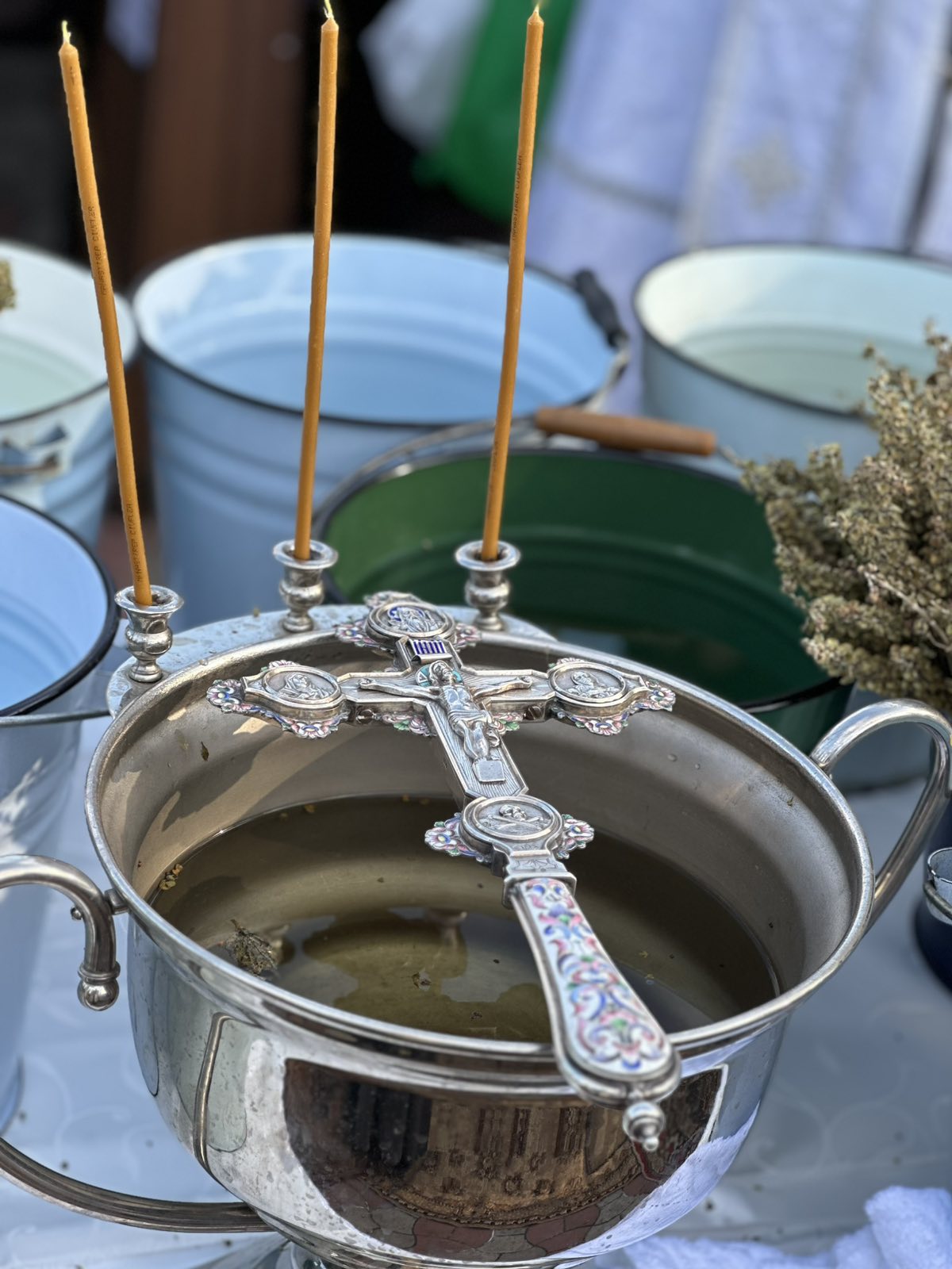 La final, preoții slujitori au împărțit apa sfințită credincioșilor care au venit în număr mare să primească și să ducă în casele lor darul Sfântului Duh.