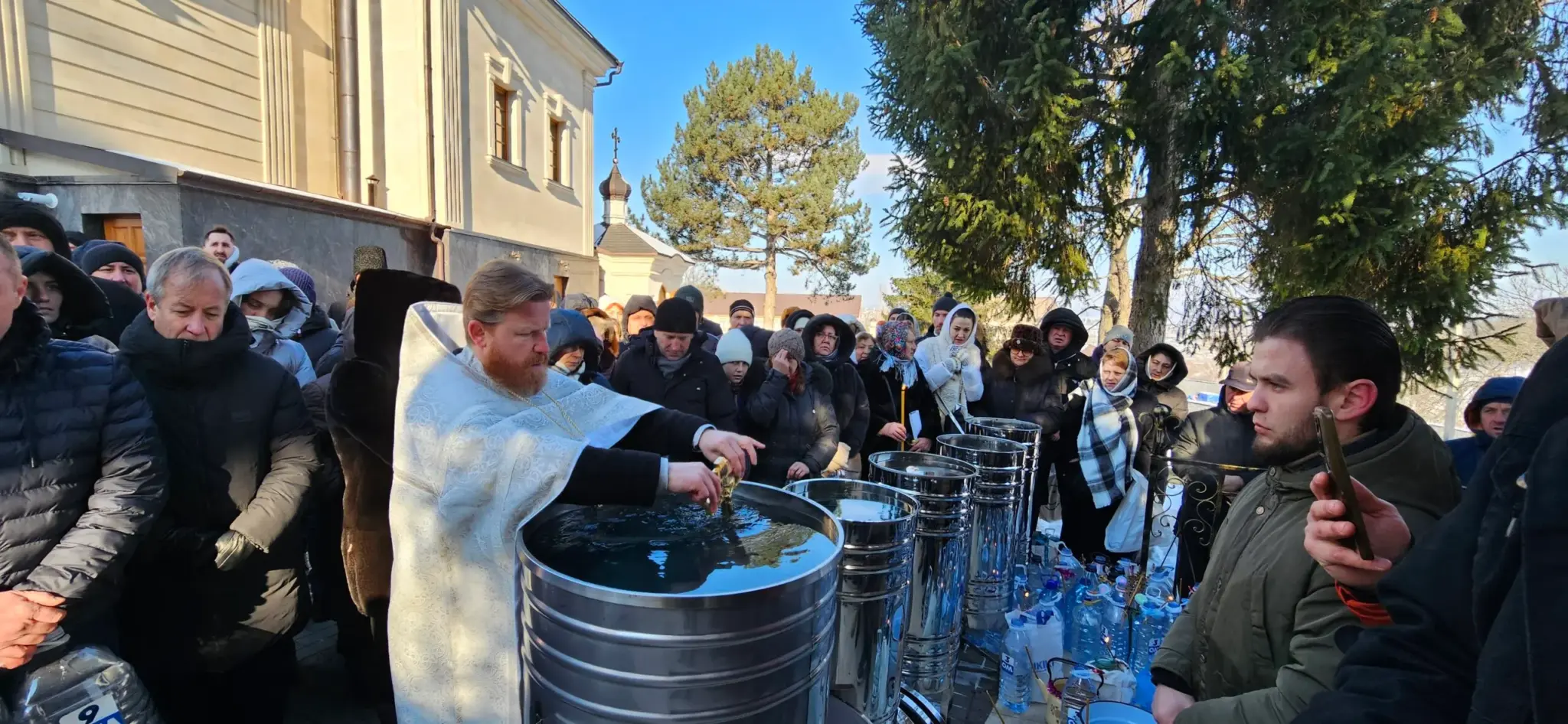 După încheierea slujbei, a fost oficiată Sfințirea cea mare a apei.