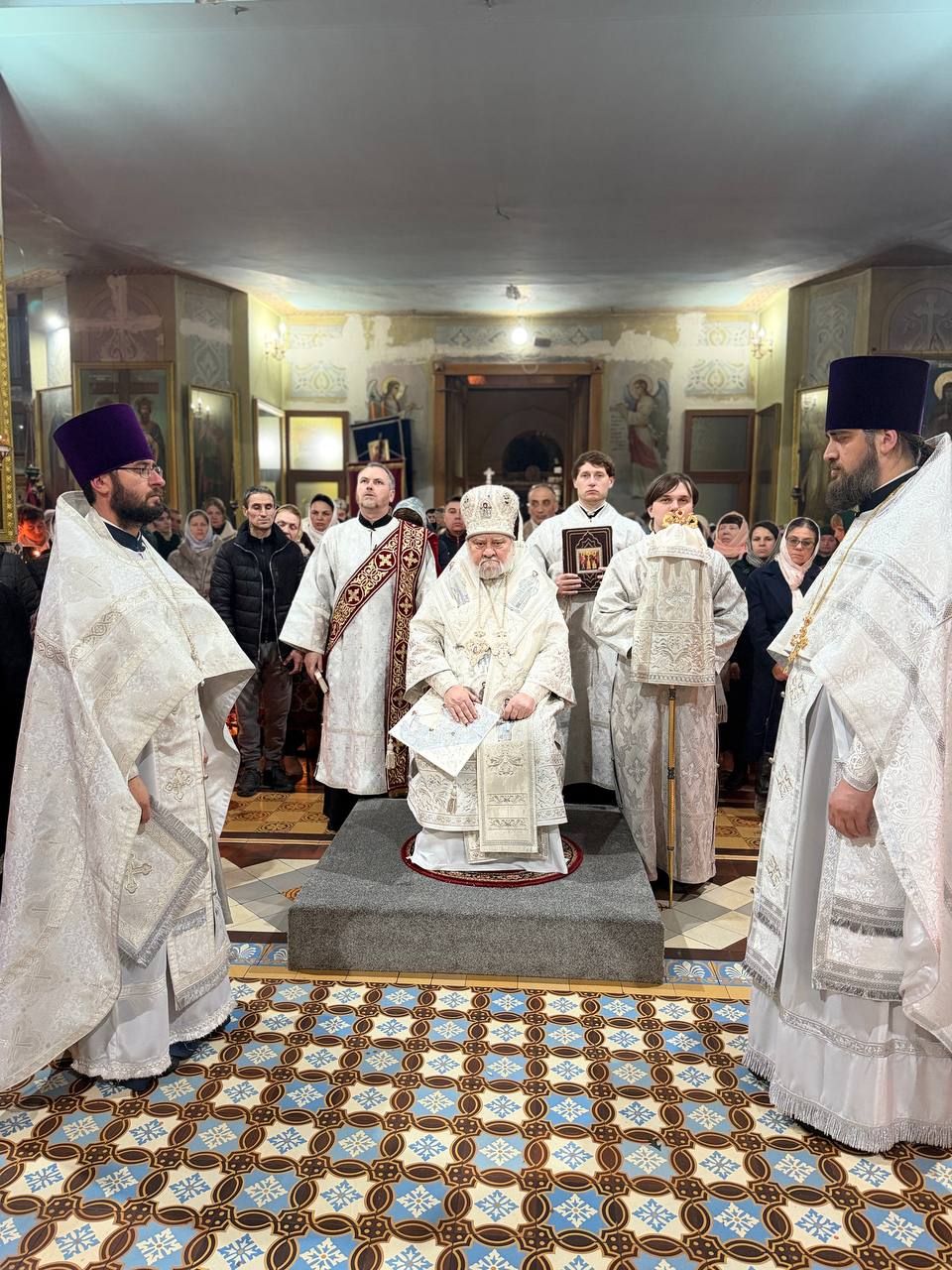La finalul Sfintei Liturghii, Chiriarhul a binecuvântat ofrandele de sărbătoare aduse de credincioși și a adresat un cuvânt de învățătură, de binecuvântare și felicitare, prilejuit de mărețul praznic al Învierii Domnului, celor au avut dragostea și răbdarea de a petrece noaptea binecuvântată în atmosfera de rugăciune specifică acestei zile, după care, conform tradiției îndătinate, a ciocnit un ou roșu cu fiecare dintre cei prezenți, rostind salutul pascal „Hristos a înviat!”.