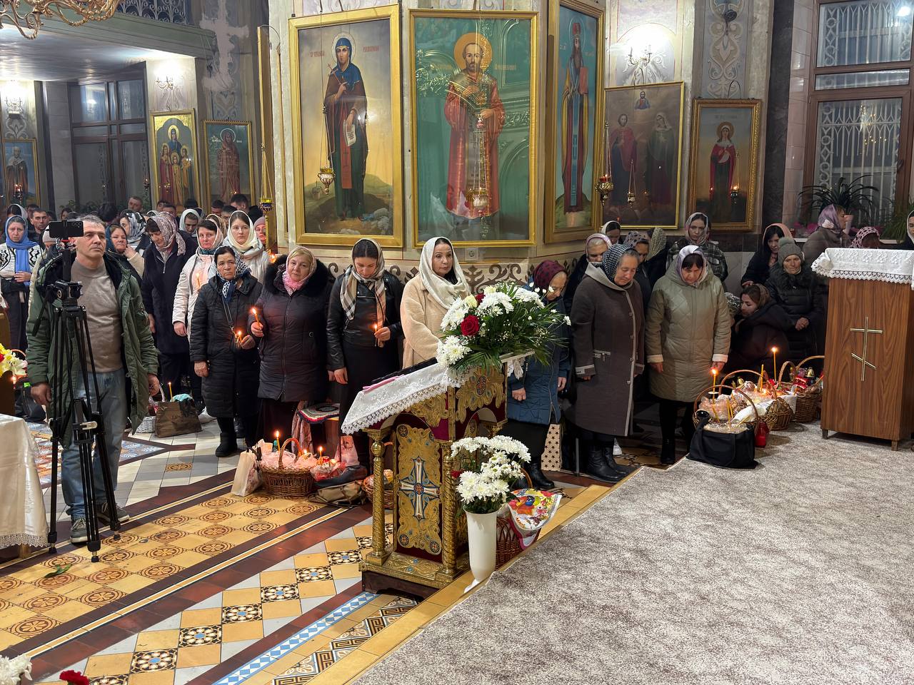 Numeroși credincioși au fost prezenți, în noaptea pascală, la Slujba de Înviere de la Catedrala Episcopală din orașul Caomrat, oficiată de către Înaltpreasfinţitul Anatolie, Arhiepiscop de Cahul și Comrat și soborul de slujitori prezent.