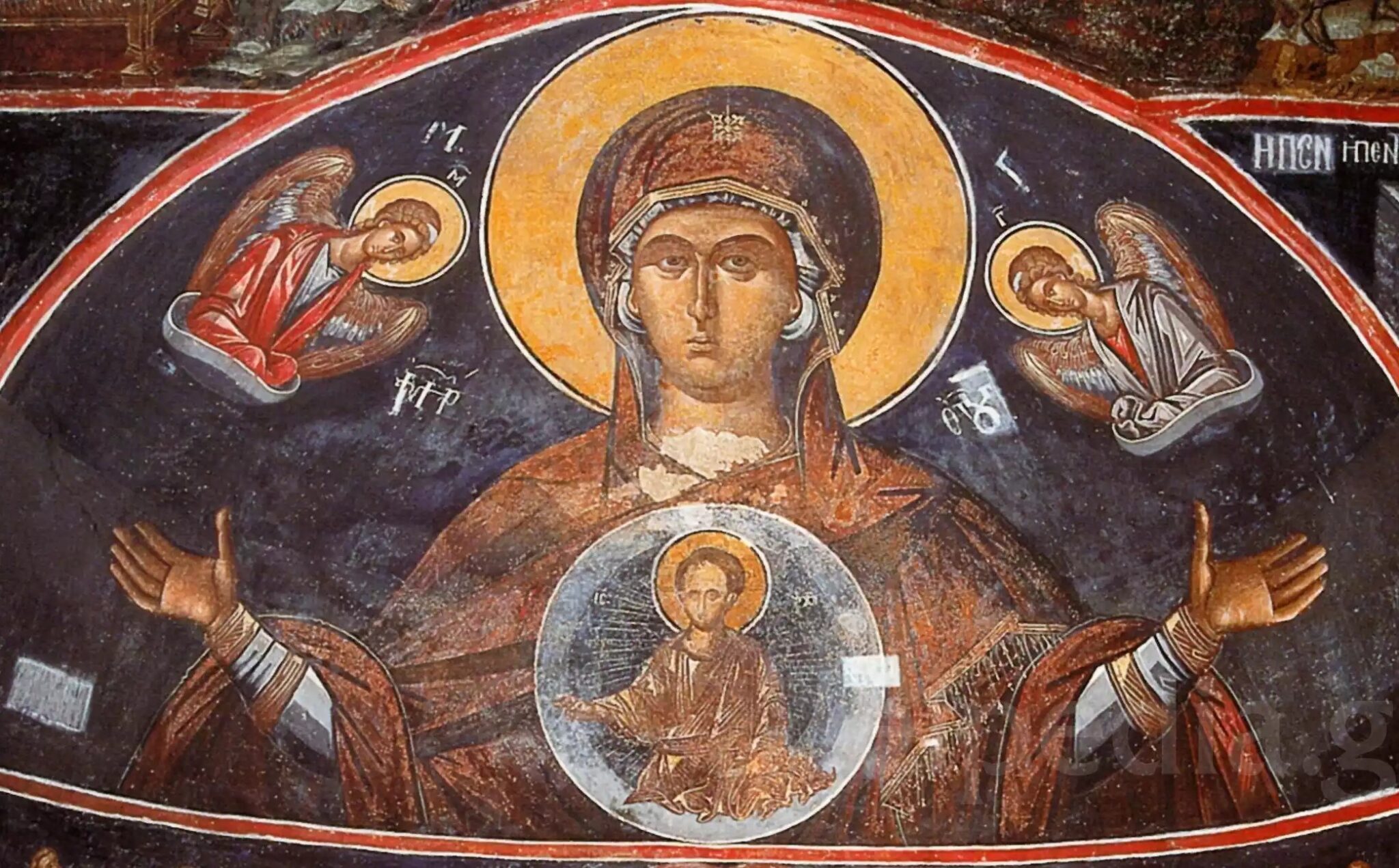 Continutul si mesajul icoanei sunt mai mult decât umbrele ei din Vechiul Testament: marturisire a întruparii, a faptului ca Dumnezeu S-a facut om, dar si ca omul s-a facut “dumnezeu” prin har, prin împartasire, dobândindu-si chipul cel dintâi, cum învata Sfintii Parinti ai Bisericii, una si nedespartita. Si tot ei spun ca daca icoana Mântuitorului Iisus Hristos marturiseste întruparea lui Dumnezeu, luând chipul lui Adam si înnoindu-l, icoana Maicii Domnului este aratarea chipului celui dintâi dintre oameni care s-a împartasit de harul întruparii, înnoirea cu chipul cel dintâi, chipul celui dintâi om îndumnezeit.