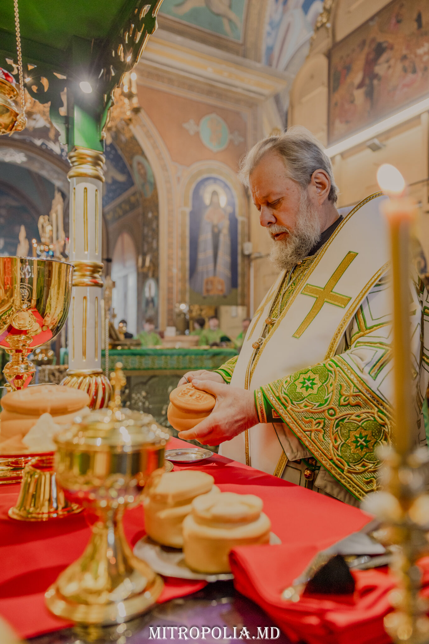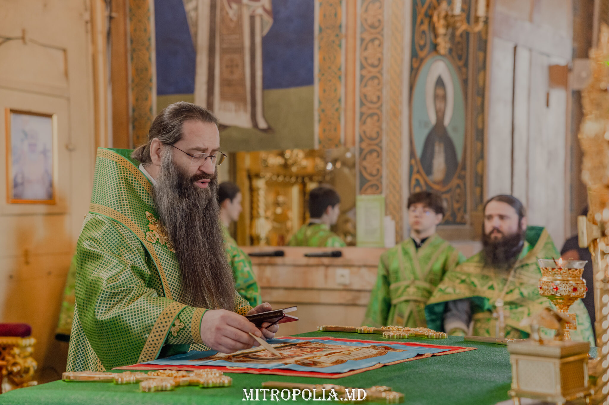 În timpul vohodului mic, Înaltpreasfințitul Vladimir, Mitropolitul Chișinăului și al întregii Moldove, a anunțat decizia Preafericitului Patriarh KIRIL, nr. U-01/14 din 28 februarie 2025, privind avansarea Preasfințitului Ioan, Episcop de Soroca și Drochia în rangul de Arhiepiscop și a înmânat arhiereului camilafca cu cruce.