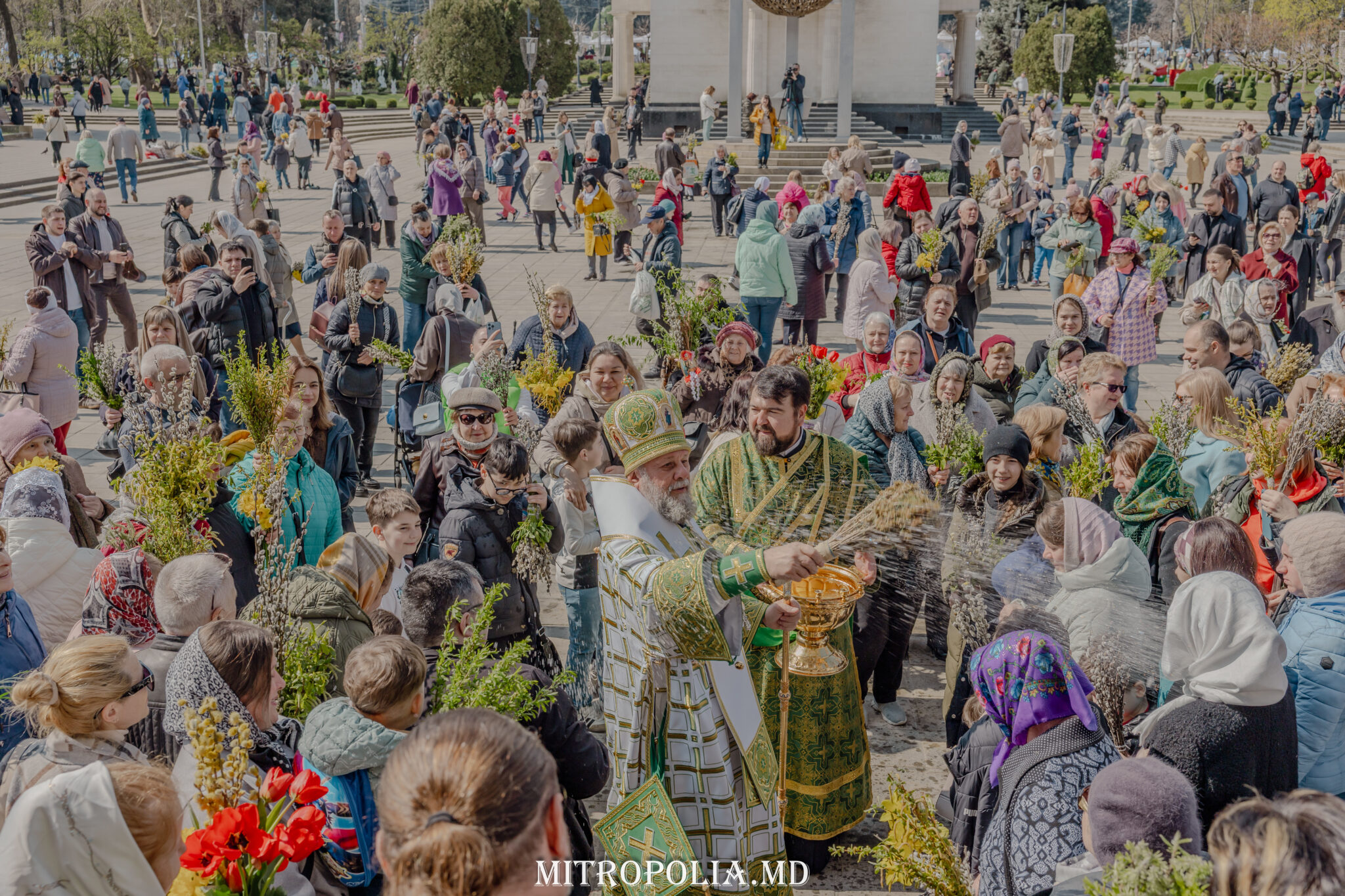 Spre final, ÎPS Mitropolit Vladimir a sfinţit stâlpările aduse de mulțimea de credincioși care au venit la Casa Domnului să aducă slavă și mulțumire bunului Dumnezeu pentru toate darurile Sale cele bogate. Datorită faptului că Intrarea Domnului în Ierusalim este o sărbătoare a bucuriei, Biserica a rânduit în această zi dezlegare la pește și vin.