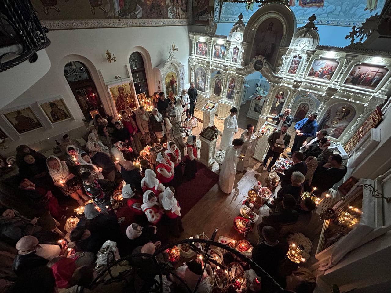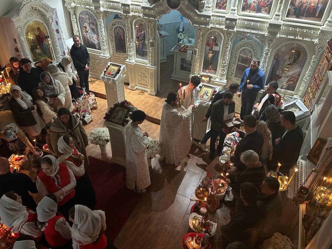 Către ora 4.00 dimineața, la finalul slujbei, părintele Mihail a sfințit pâinea numită artos și a binecuvântat prinoasele aduse de credincioși – carne, ouă, brânzeturi și alte bucate pascale.