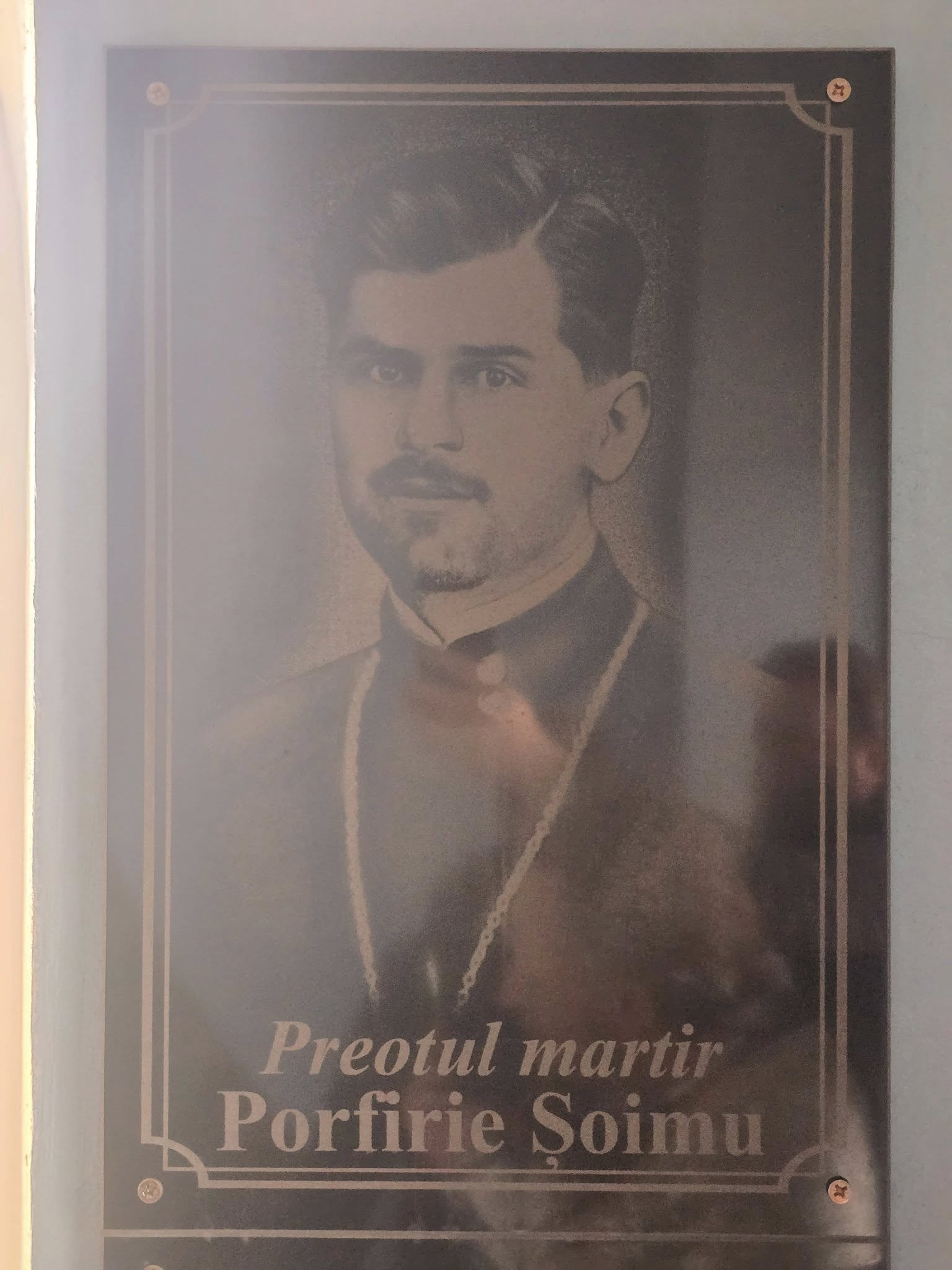 Evocând amintirea slujitorului martir, astăzi a fost sfințită placa comemorativă, montată în pridvorul bisericii din Parcani.