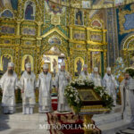 Cu acest prilej, Mitropolitul țării a săvârșit Sfânta și Dumnezeiasca Liturghie, avându-i alături pe ierarhii Bisericii Ortodoxe din Moldova:
