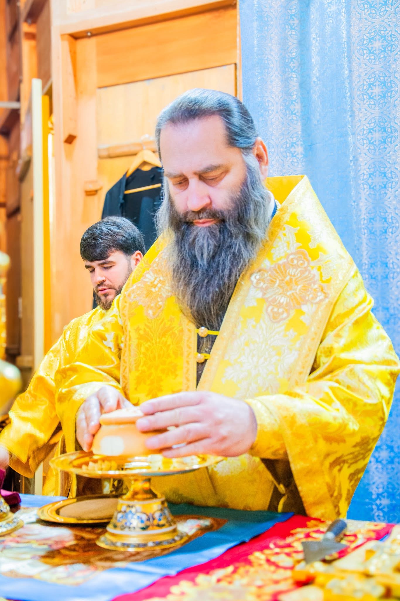 Ierarhului i-au coliturghisit: prot. mitr. Grigore Dodon, protopop de Călărași, prot. mitr. Victor Mihalache, secretarul protopopiatului Strășeni, și alți slujitori ai Bisericii.