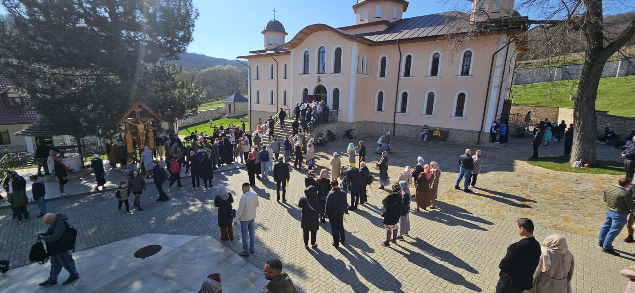 În Duminica a șasea din Postul Mare, numeroși credincioși au participat alături de obștea monahală la Slujba Praznicală, oficiată de preoții slujitori ai așezământului monahal. În această zi prăznuim cu bucurie și emoție duhovnicească Intrarea Domnului în Ierusalim. Privim la intrarea smerită a Mântuitorului în Cetatea sfântă și ne cutremurăm, știind cele ce vor urma, dar ne și bucurăm, slăvind pe Dumnezeu, că prin jertfa Sa ne-a eliberat din robia păcatului și ne-a readus pe calea sfințeniei.