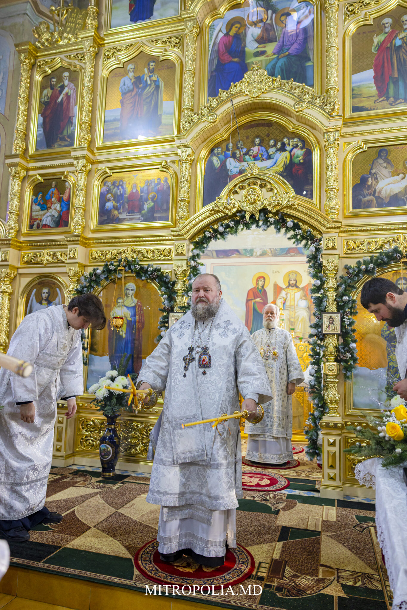 Ierarhilor au coliturghisit prot. mitr. Mihail Mungiu, secretar eparhial, prot. mitr. Petru Cheleș, protopop al UTA Găgăuzia, PC Arhim. Irinarh (Costru), starețul Mănăstirii Țigănești, și soborul de preoți și diaconi slujitori.
